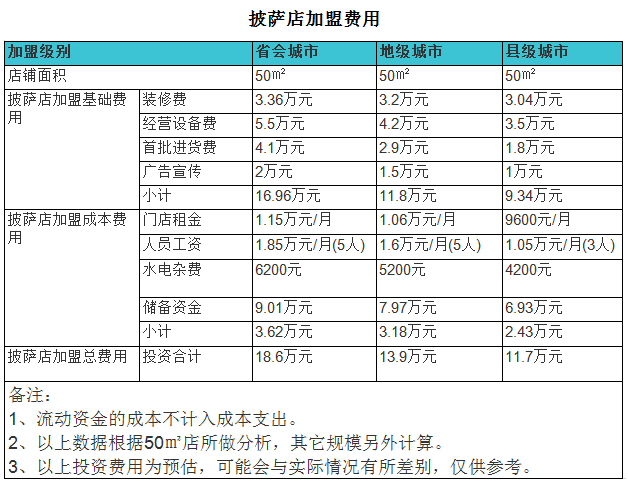 在縣級(jí)城市彭州開(kāi)一家50平米的披薩店,成本只需要11.7萬(wàn)元。