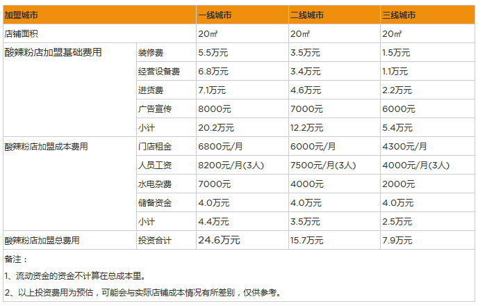 開家酸辣粉店投資一般需要多少錢?20㎡店鋪投資僅7萬