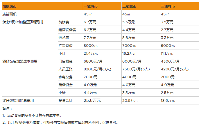 開家煲仔飯店投資一般需要多少錢?縣城開45㎡店投資13萬