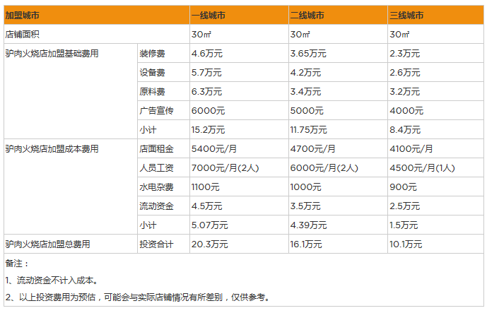 一般成本的使用在籌備期會用在店面租金、設備購買以及原料采購上,投資者應該充分了解想開驢肉火燒館的規模,在合理范圍內使用資金。