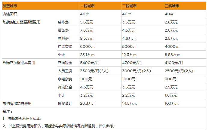 開家熱狗店投資一般需要多少錢?40㎡投資10萬即可順利營業