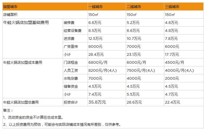 開家牛蛙火鍋店投資一般需要多少錢?三線城市成本投資22萬元