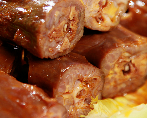 鴨脖店一般挑選3斤左右合適,市場批發價3.5元/斤左右,每只成本10.5元,加工消耗成本0.5元/只,共計成本11元/只。鴨的出品率可達60%左右,生鴨制成成品重量為1.8斤,市場銷售價13-15元不等。日銷售量最少在20只以上。