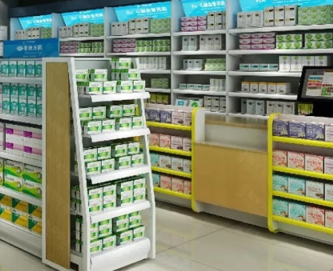 所以裝修好的藥店從門口向內望去,貨架會排放的整齊有序,藥品種類被貨架上的廣告牌或龍門架大大的標識出來,整體陳列通透不阻礙顧客視線;裝修配色使用“基礎淺色+企業色”,簡單明快,給予顧客店內環境整潔的良好感受。