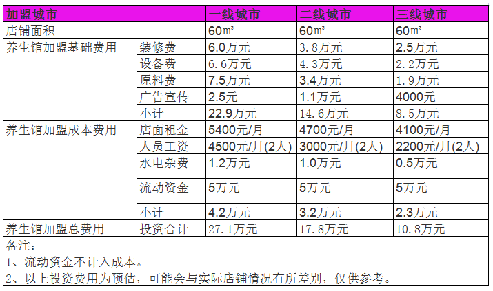 開家養生館投資一般需要多少錢?60㎡店面投資10萬元