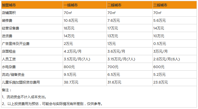 由于地區(qū)經(jīng)濟(jì)發(fā)展程度、兒童樂(lè)園規(guī)模大小等區(qū)別,不同的兒童樂(lè)園投入不同,收益也不同,就以某三線城市的一家70平的兒童樂(lè)園為例,分析下兒童樂(lè)園利潤(rùn)。