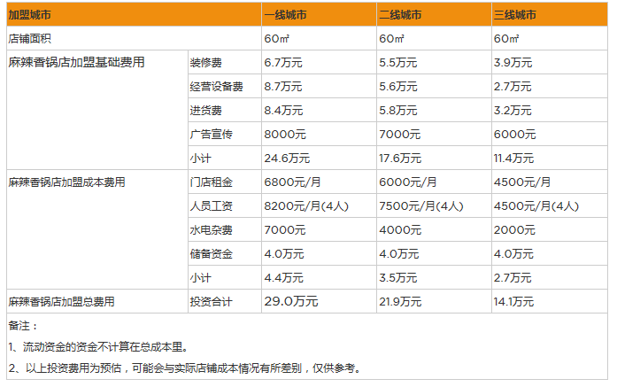 開家麻辣香鍋店投資一般需要多少錢?60㎡店鋪啟動資金14萬