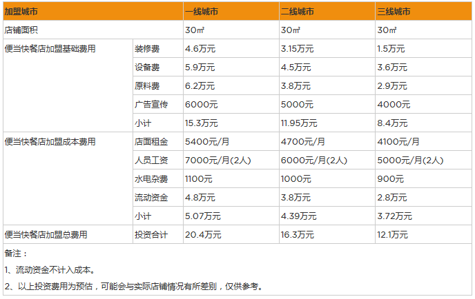 還有一點讓很多小成本投資者非常關注,那就是便當的投資成本確實不高。即使你開了一家便當專營店,你也需要先向那家品牌公司支付費用,大多數時候,你會發現總投資成本不是很高,而且仍然在可接受的范圍內。