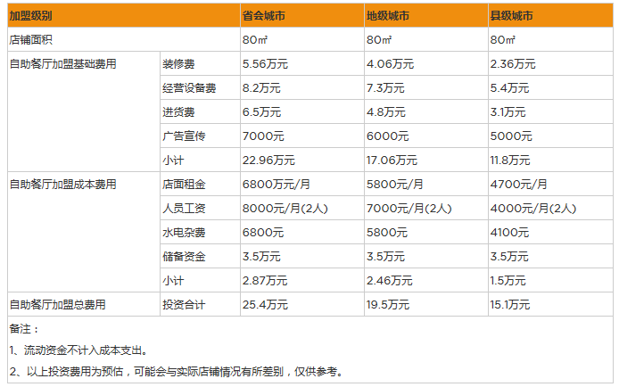 開家自助餐廳投資一般需要多少錢?80㎡店鋪啟動資金15萬