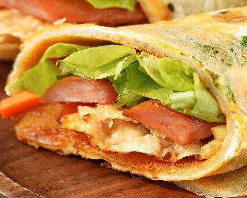 手抓餅是一種很好吃的小吃,特別是剛剛做好的手抓餅外面是焦的,可是里面確是嫩的,咬在嘴里脆脆的,里面還夾雜著肉和蔬菜、雞蛋,味道真是不錯。