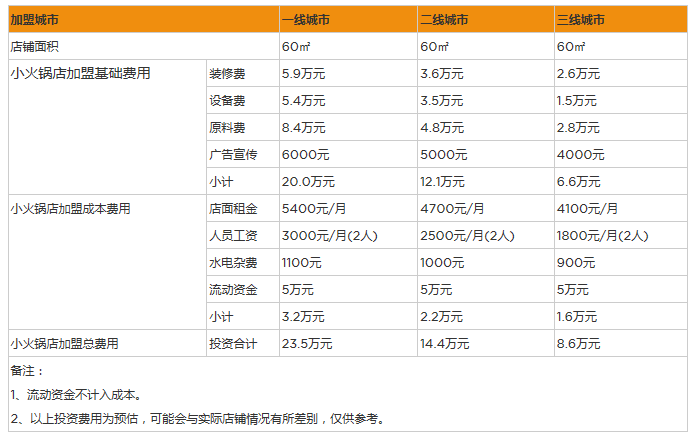 開家小火鍋店投資一般需要多少錢?60㎡店投資8.6萬