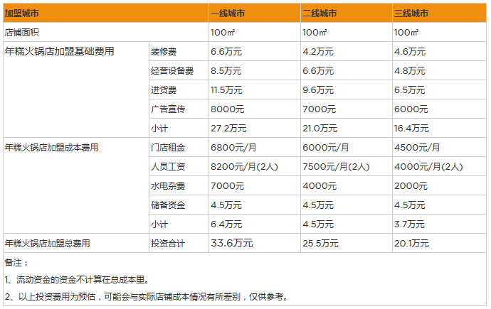 開家年糕火鍋店投資一般需要多少錢?100㎡投資20萬,詳情數據分析