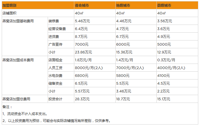 開家燕窩店投資一般需要多少錢?投資15萬元,投資7個月就回本