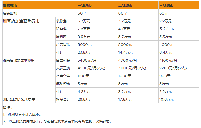 門店費用包含了門店租賃費、裝修費、設備采購安裝調試費用等項目。湘菜店是家常菜館,比快餐店要稍微正式一點,所以規模需求較大,會達到個百余平米的樣子。而像餐館這種,大多開在人流量較大的地方,對地段好壞也有要求。