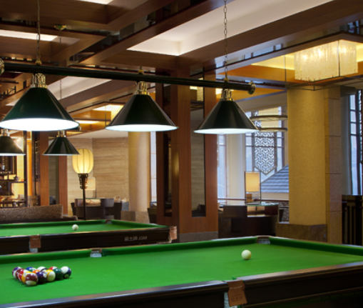 球房的裝修凸出了臺球室的特點,會給顧客一種舒適、和諧美感,尤其是內部的裝修,影響顧客愿意在臺球廳里呆的時長,一般在刷墻時候要注意,顏色不能過于明亮,注意整體搭配,內部格局結構統一,給人不凌亂,空間舒適的感覺。